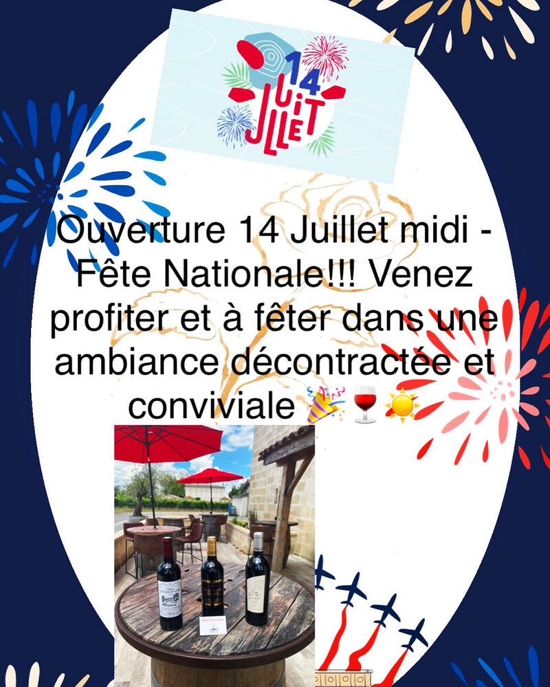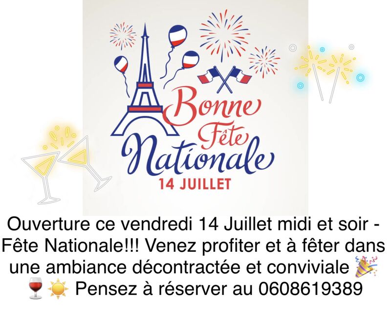 Ouverture 14 Juillet midi - Fête Nationale! Venez profiter et à fêter dans une ambiance décontractée et conviviale