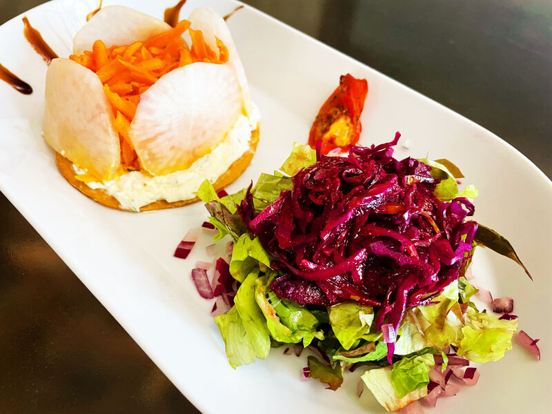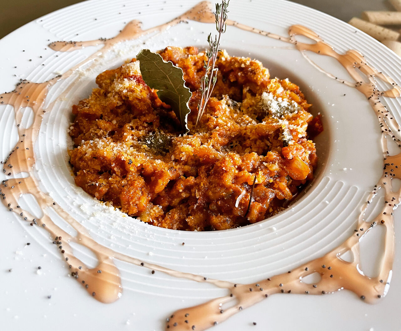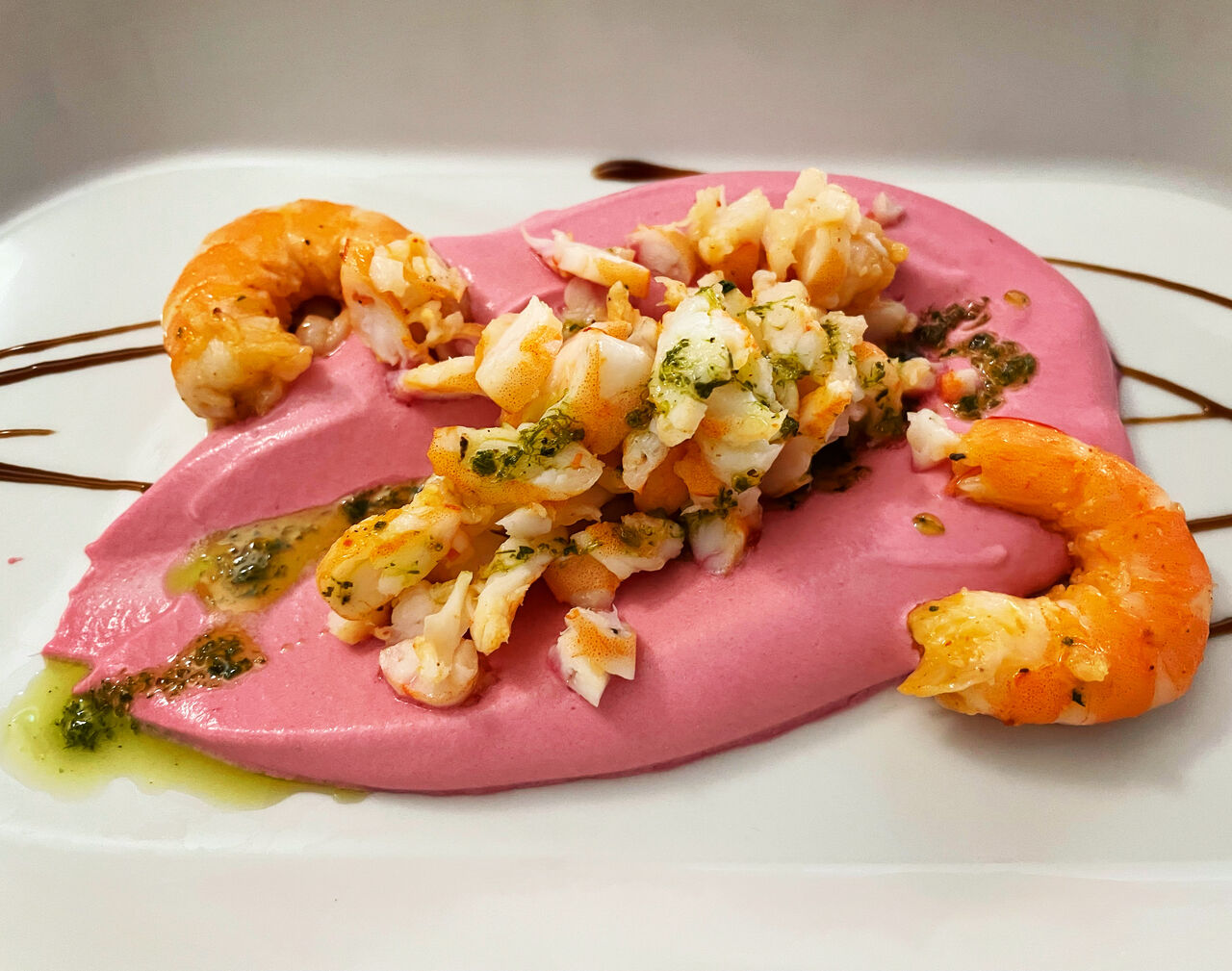 Pour cette journée spéciale dédiée aux amoureux, nous avons créé deux menus, servi midi et soir.