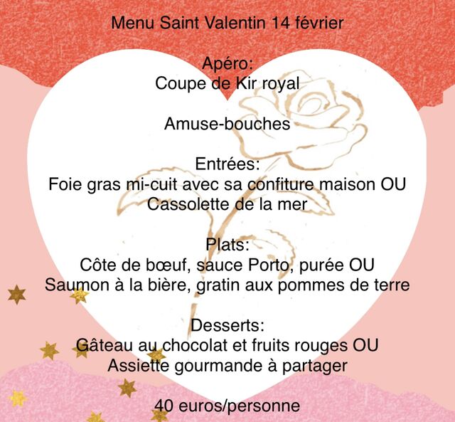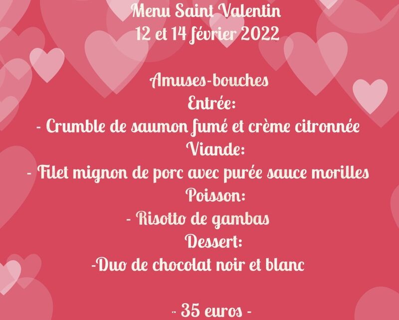 Pour la Saint Valentin - venez profiter d un dîner en amoureux dans une ambiance romantique. Pensez à réserver au 0608619389