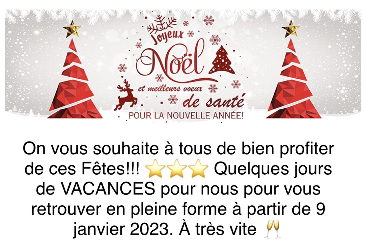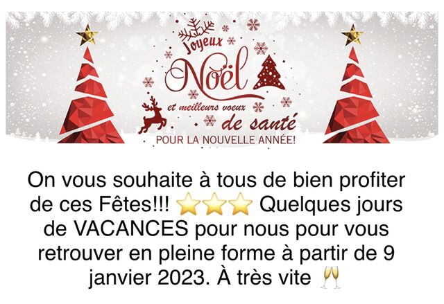 Toute l équipe vous souhaite de très Bonnes Fêtes!!! ⭐️⭐️⭐️ Quelques jours de VACANCES pour nous pour vous retrouver en pleine forme à partir du 8 janvier 2024.