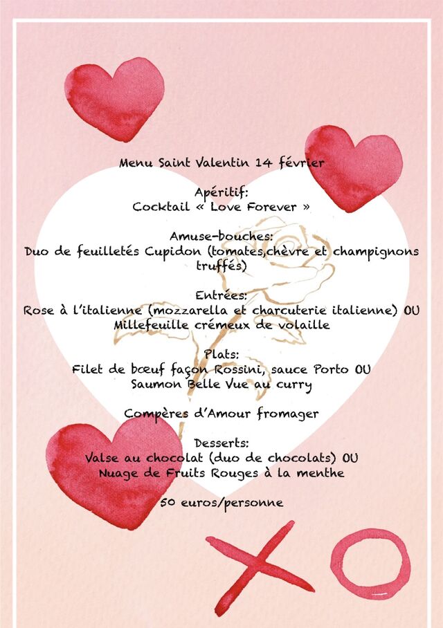 Venez profiter de la fête St. Valentin avec nous! Notre menu spécial 14 février. Pensez à réserver au 06 08 61 93 89 !🌸 A très vite!