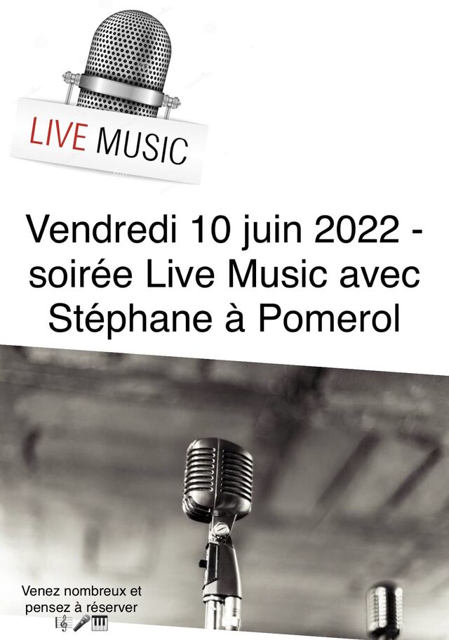 Accueillons à nouveau Alexandre Marceau l’enfant du pays pour un dîner concert. Reprise de Jean-Jacques Goldman époustouflante 🤩!! Rdv le vendredi 9 décembre 2022 entre 19h-19h30 pour une soirée dîner concert inoubliable à Pomerol 🎶 réservation au 0608619389 (menu complet 30 euros)🎶début du concert 20:40🎶 On vous attend nombreux! 😉🎶🍷🍻🎸🥁