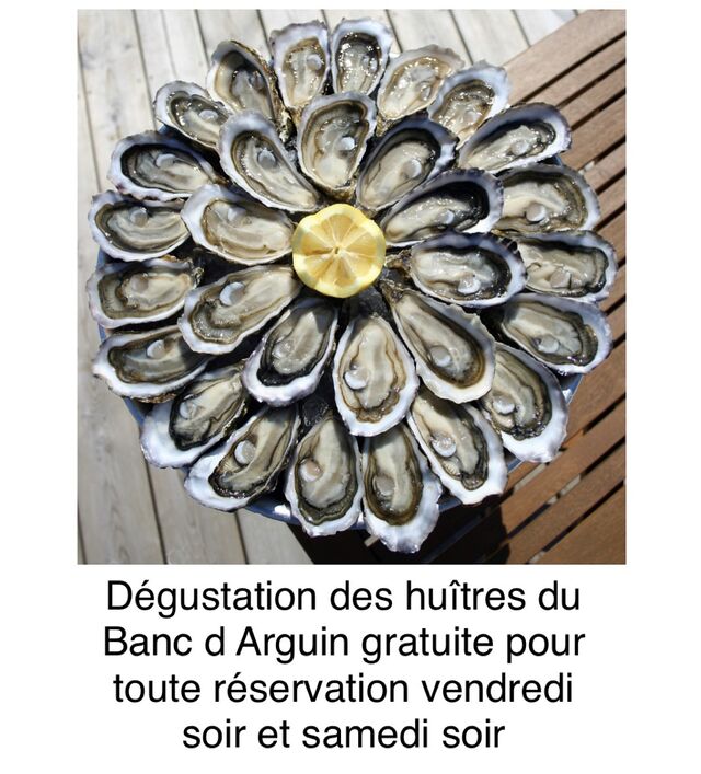 Dégustation des huitres du Banc d Aguin gratuite pour toute réservation vendredi soir et samedi soir.